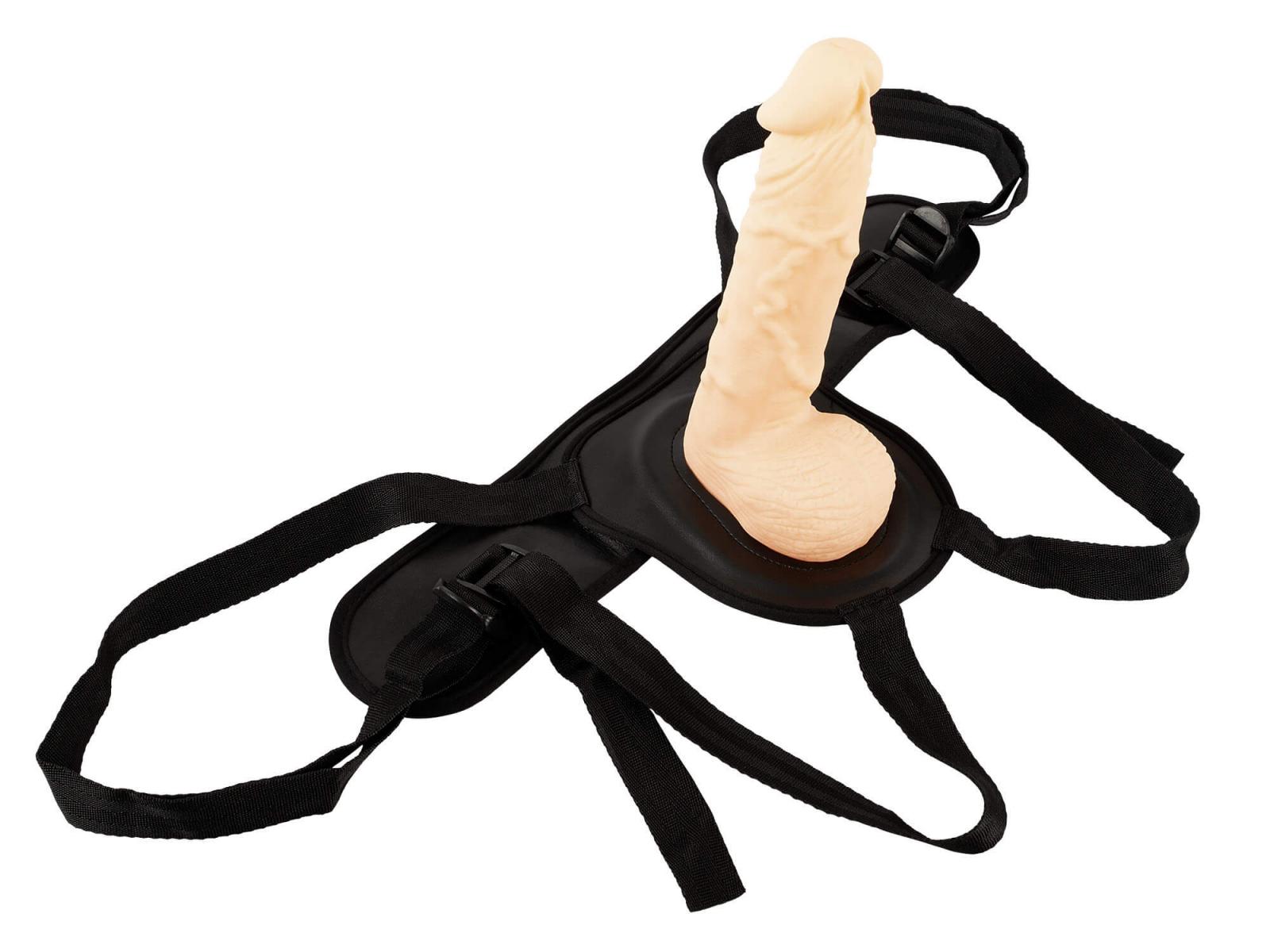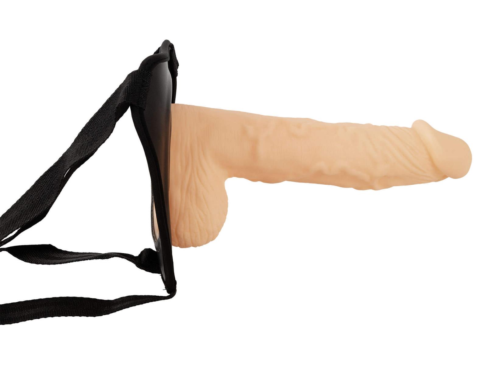 Un dildo natural hueco, firmemente sujeto a un arnés elástico ajustable con correa. Un dildo rígido y duro con venas pronunciadas y glande claramente visible que proporciona un masaje y estimulación intensos.